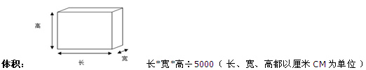 物品體積與實(shí)際磅重取大計(jì)費(fèi),測(cè)量體積以最高點(diǎn)測(cè)量的方式,計(jì)算公式:長(zhǎng)(cm)×寬(cm)×高(cm)÷5000 |